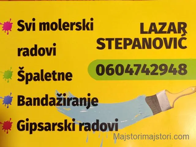 Obavljam sve molerske poslove, brzo, pedantno i čisto. Obrada oko prozora i vrata, gipsaeski radovi, tehnike.